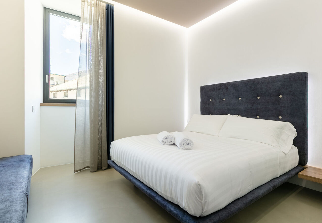 Minimalistisch mit edlen Naturwerkstoffen eingerichtet und im ersten Stock mit Blick auf die Piazza Cavour gelegen, bietet den Gästen ein freundliches und elegantes Ambiente, in dem man sich entspannen und seinen Urlaub in Tirano genießen kann.